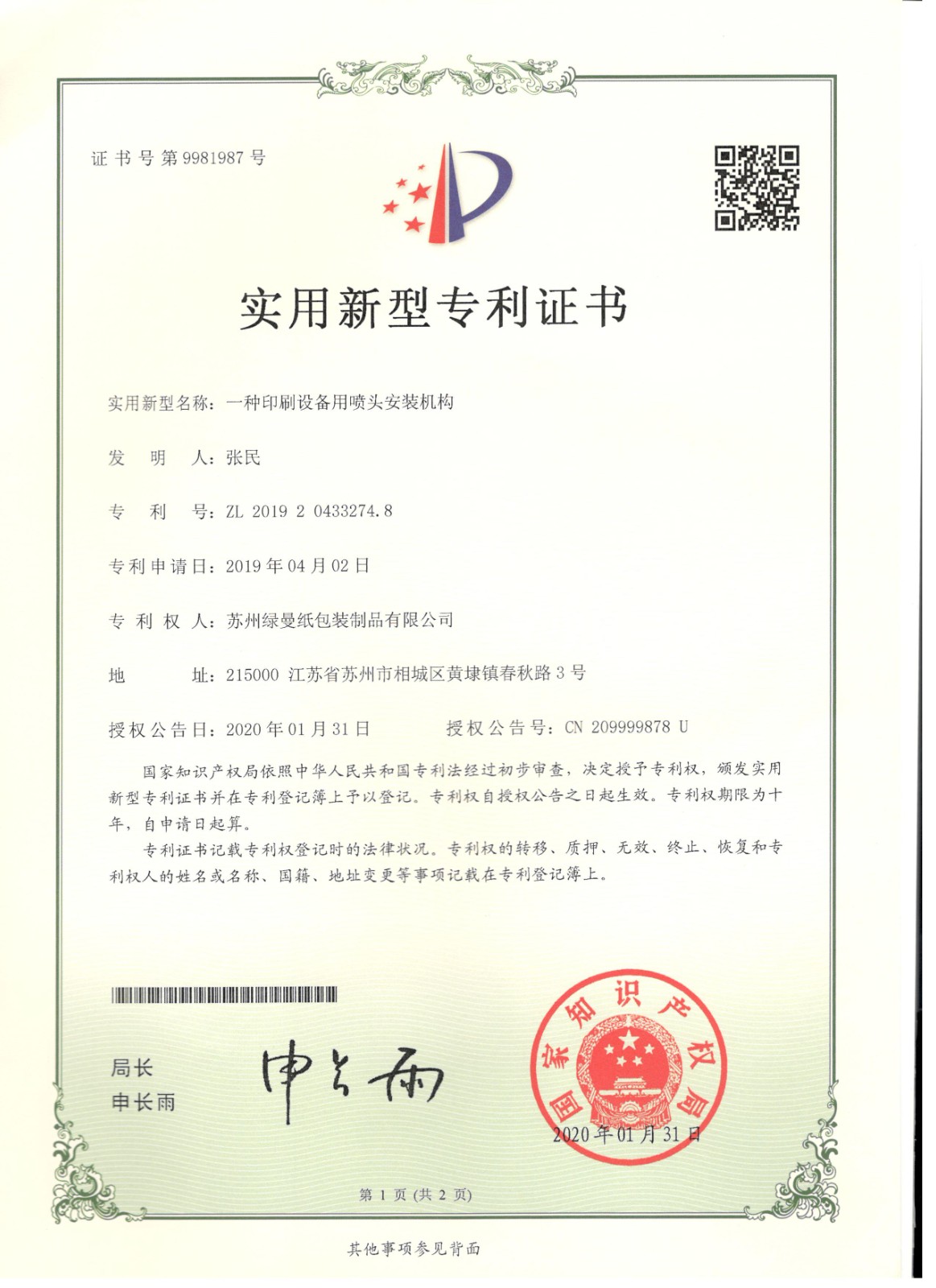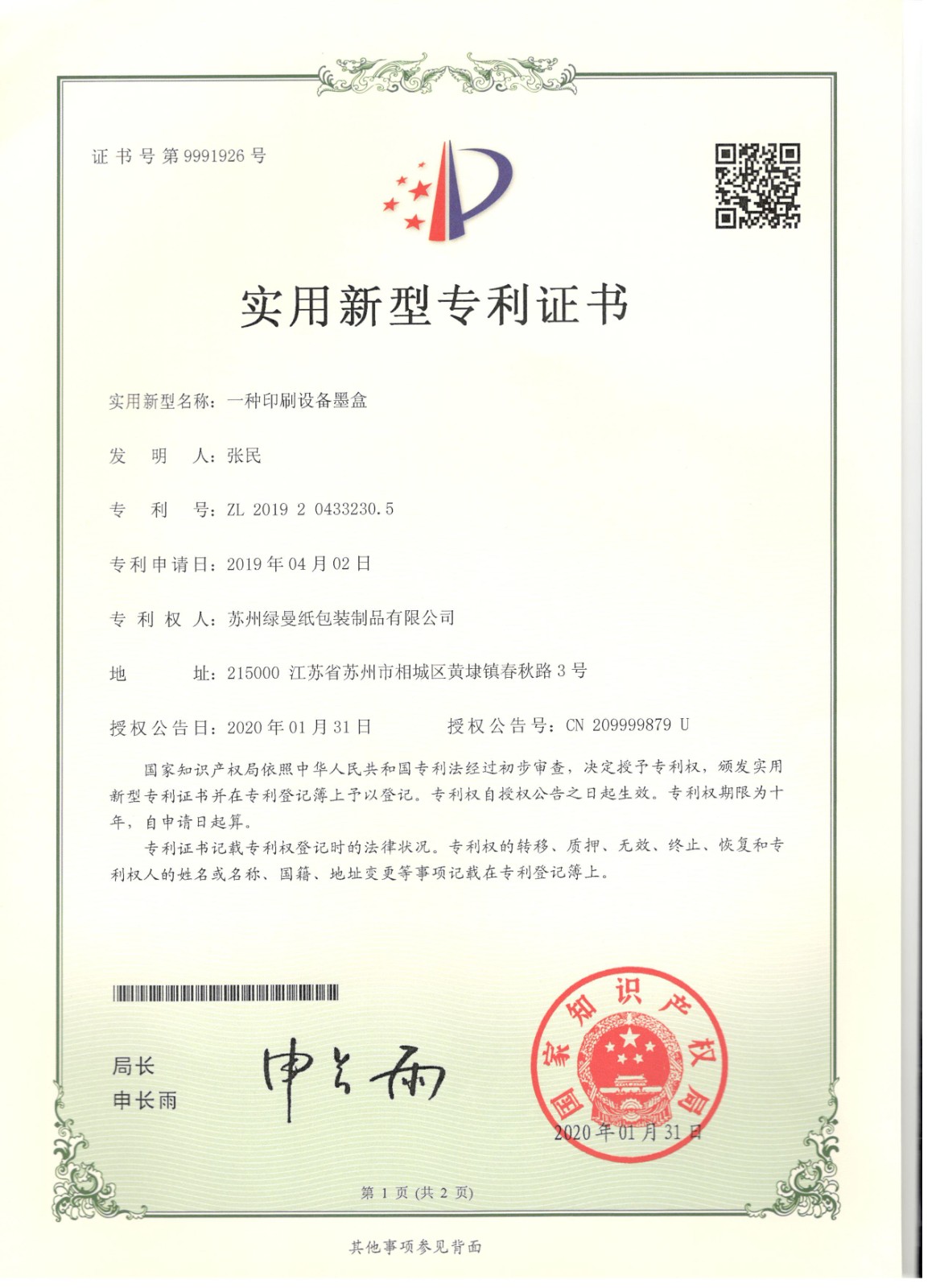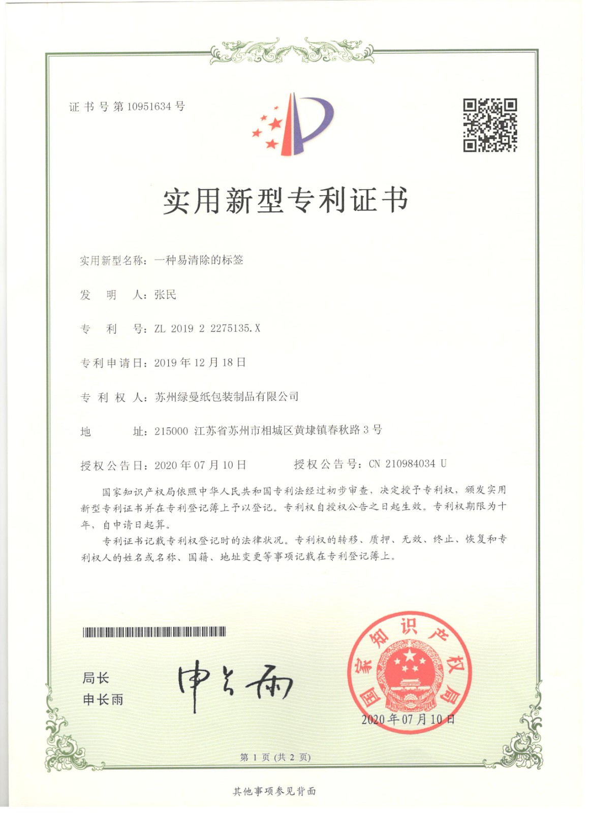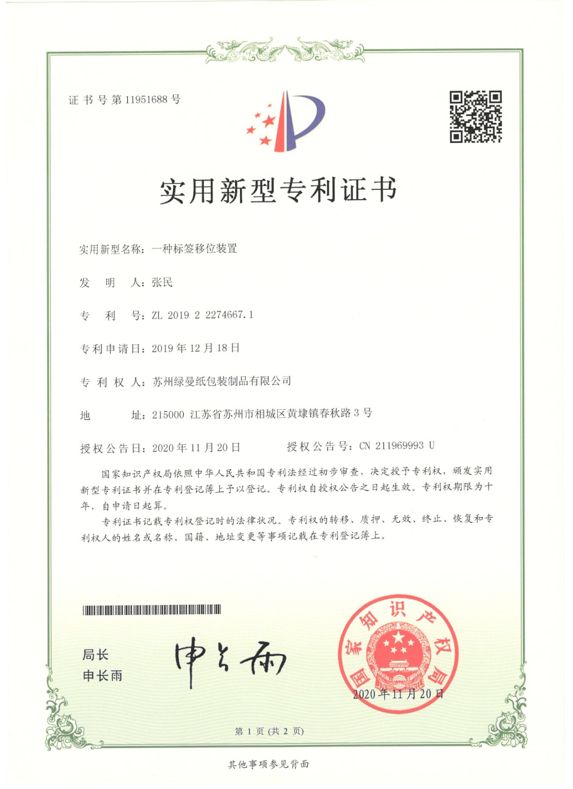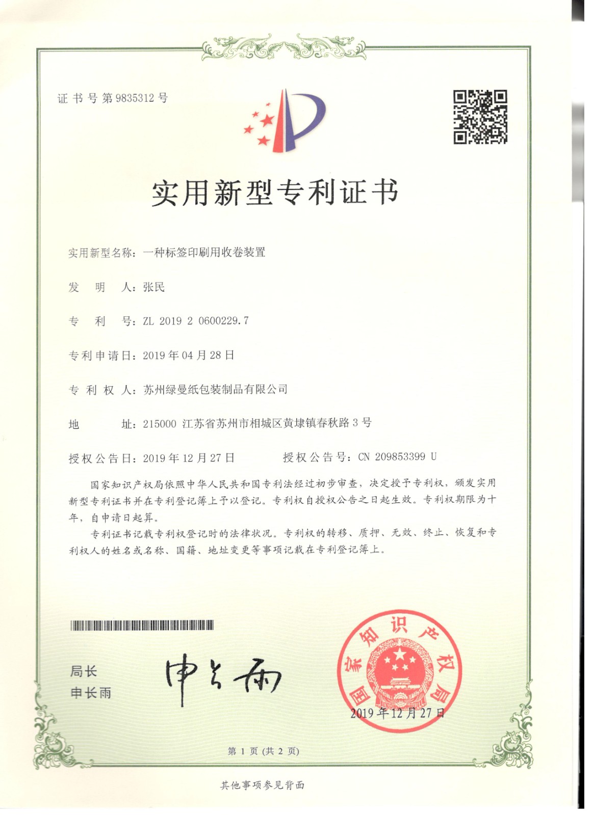 專利證書